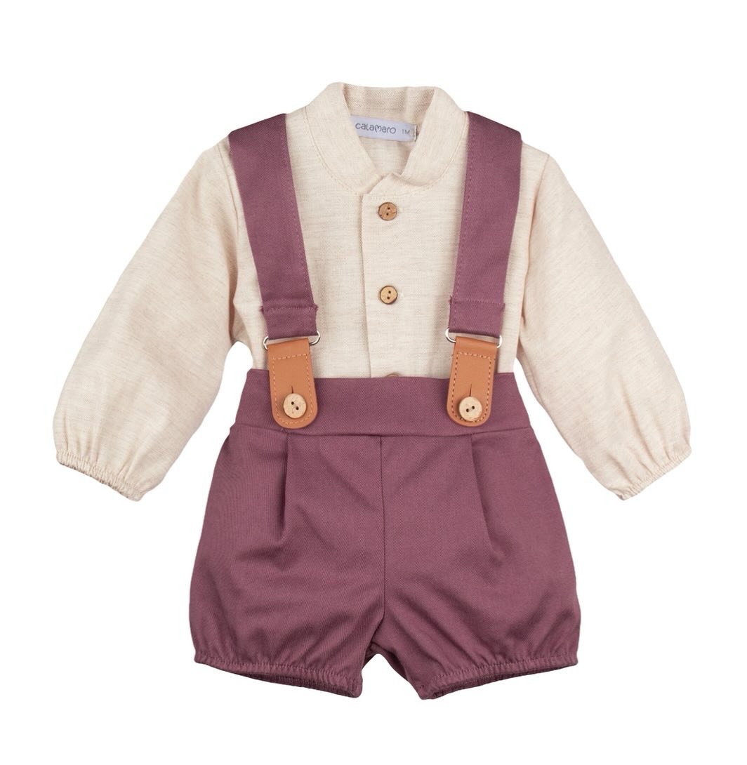 salopette e camicia con collo coreano.