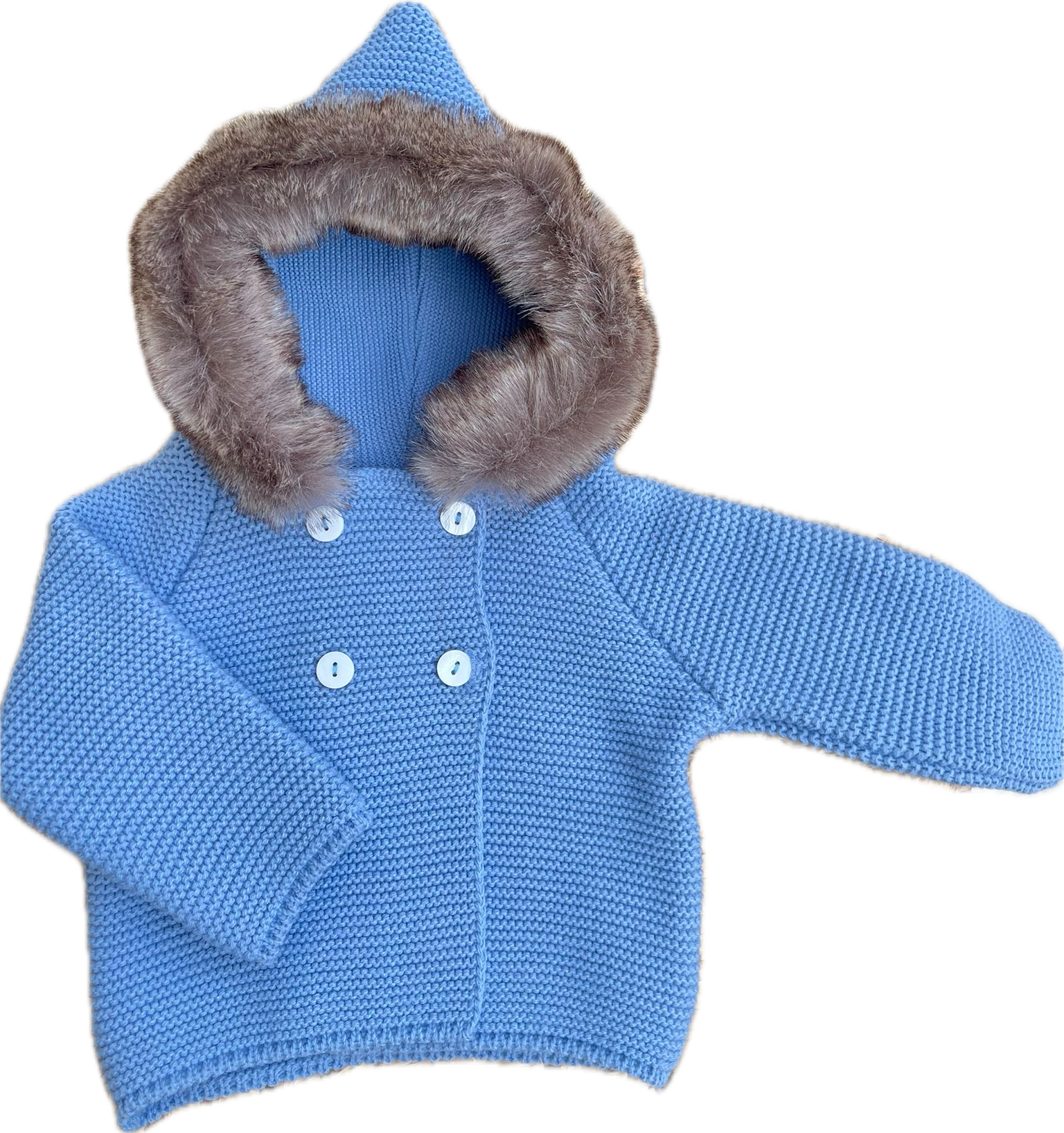 Cappottino morbido, doppio petto con cappuccio.