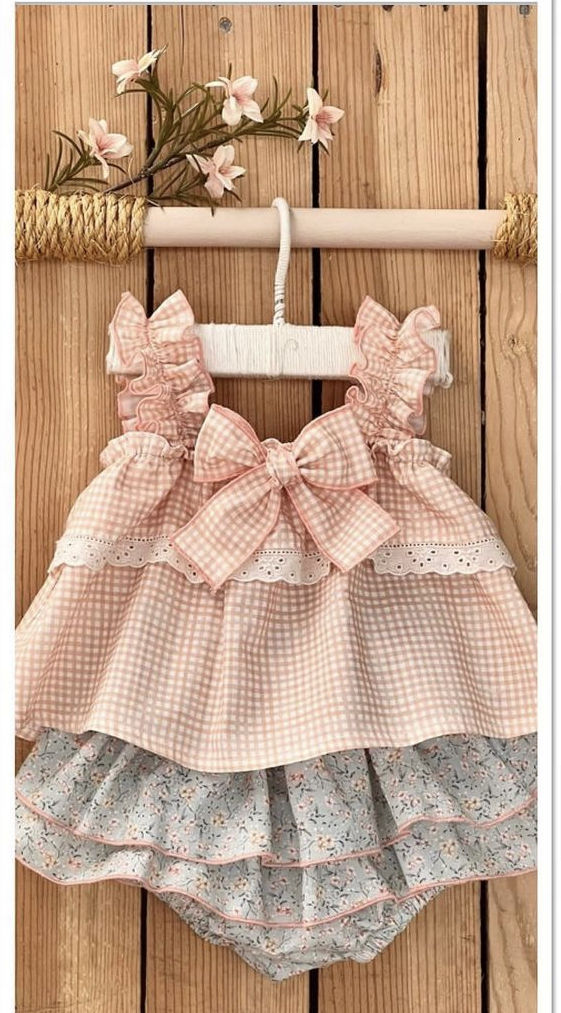 Due pezzi ; gonna e blusa giromanica con fiocco.