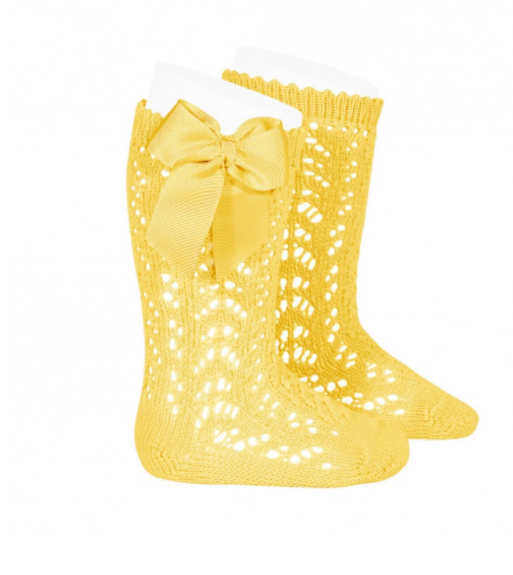 Calzino alto traforato con fiocco in raso