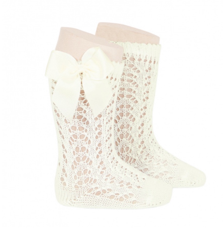 Calzino traforato con fiocco in raso