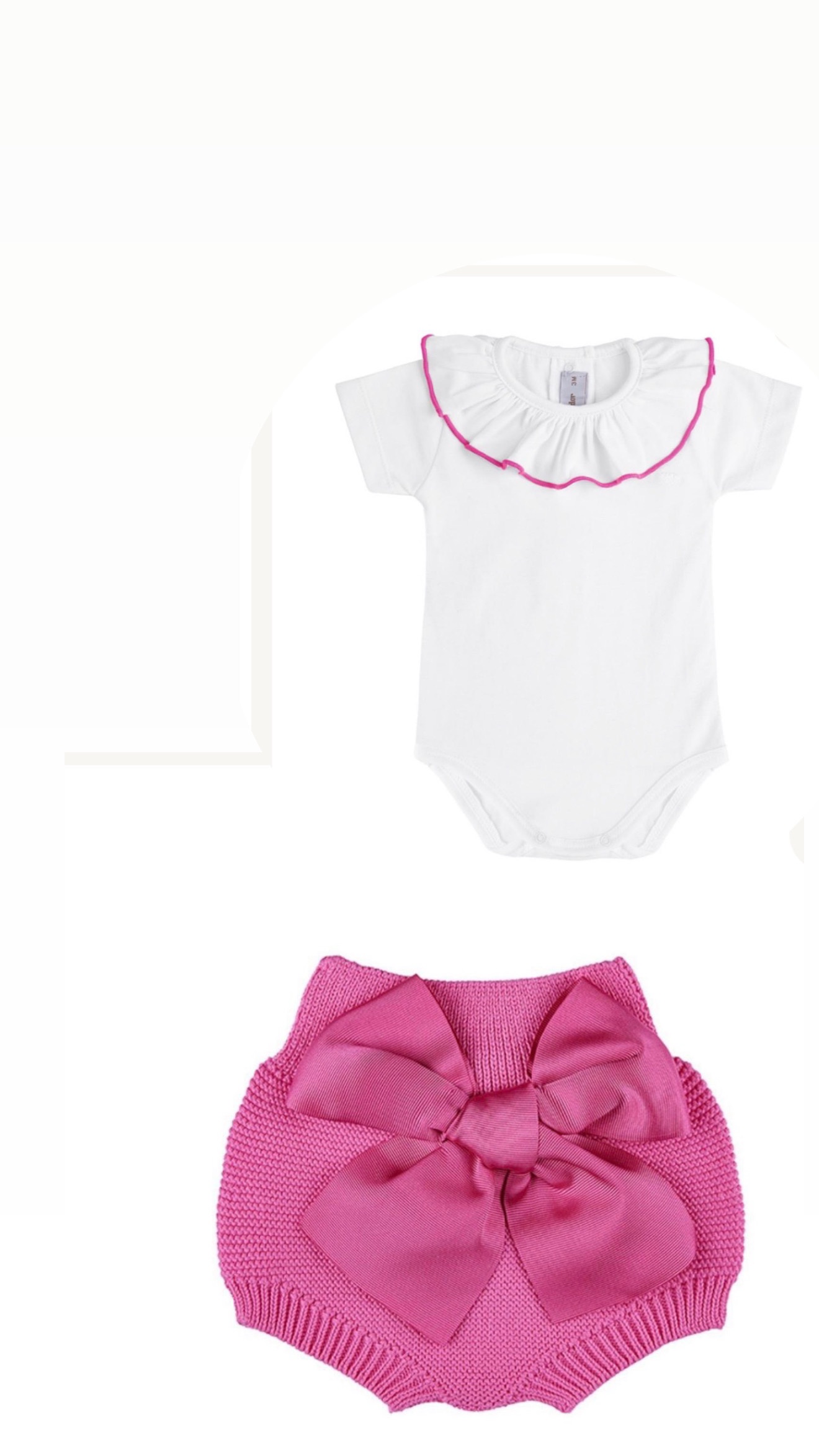 Culotte in filo con fiocco e body in cotone con colletto