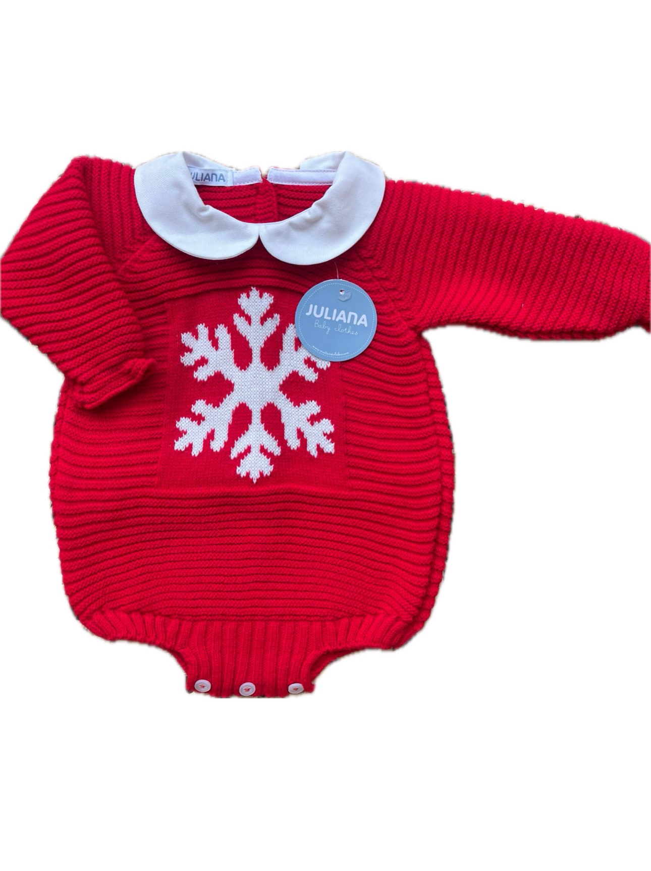Pagliaccetto con colletto bianco e fiocco di neve.