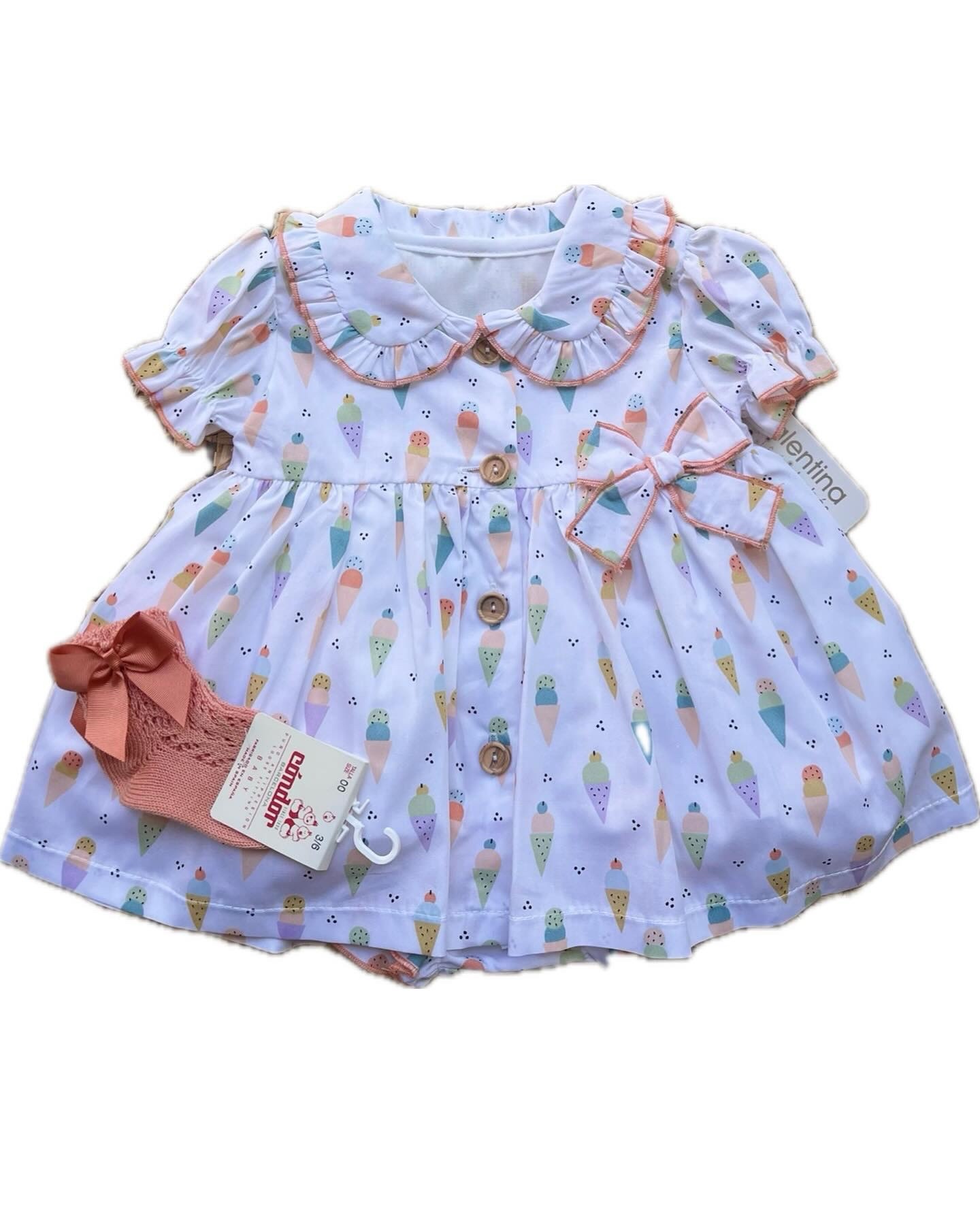 Abito con colletto tondo . Fantasia gelato .