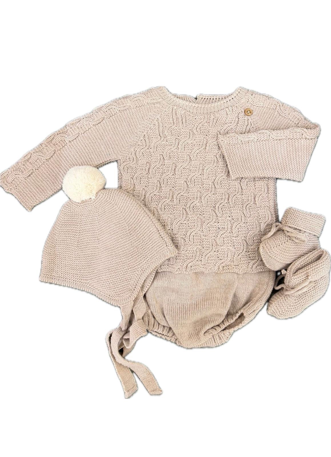 Set nascita in filo invernale con cappello e babbuccia