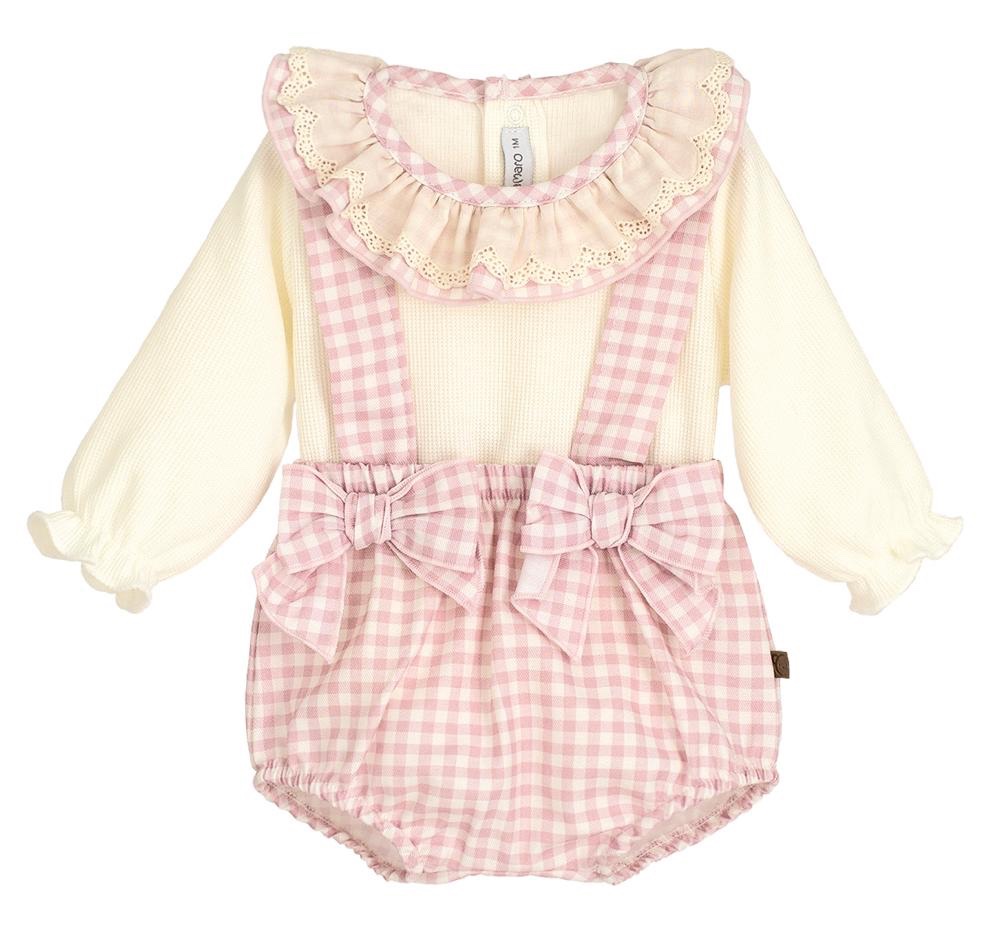 Maglioncino felpato con colletto e salopette in caldo cotone