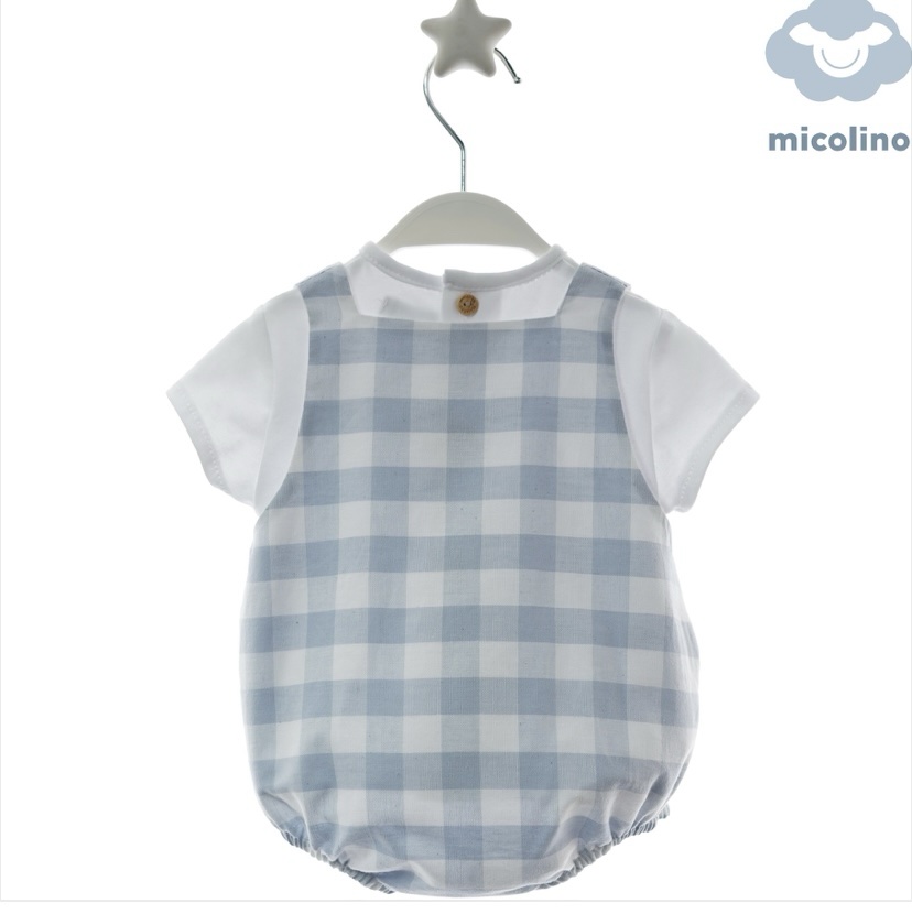 T-shirt in cotone bianca con salopette a quadretti