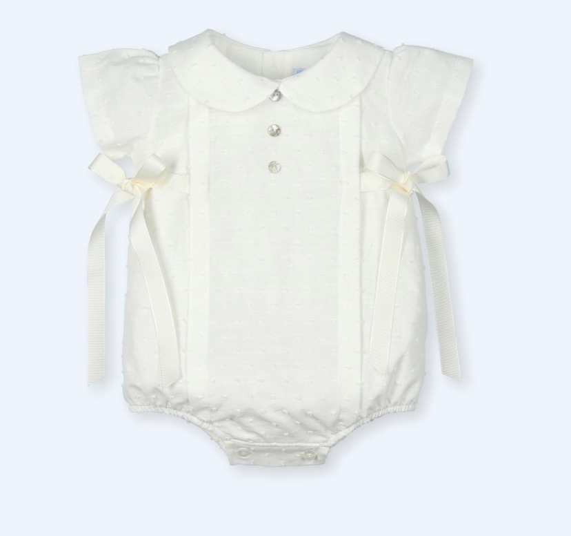 Pagliaccetto in cotone con colletto tondo e nastri lateralmente