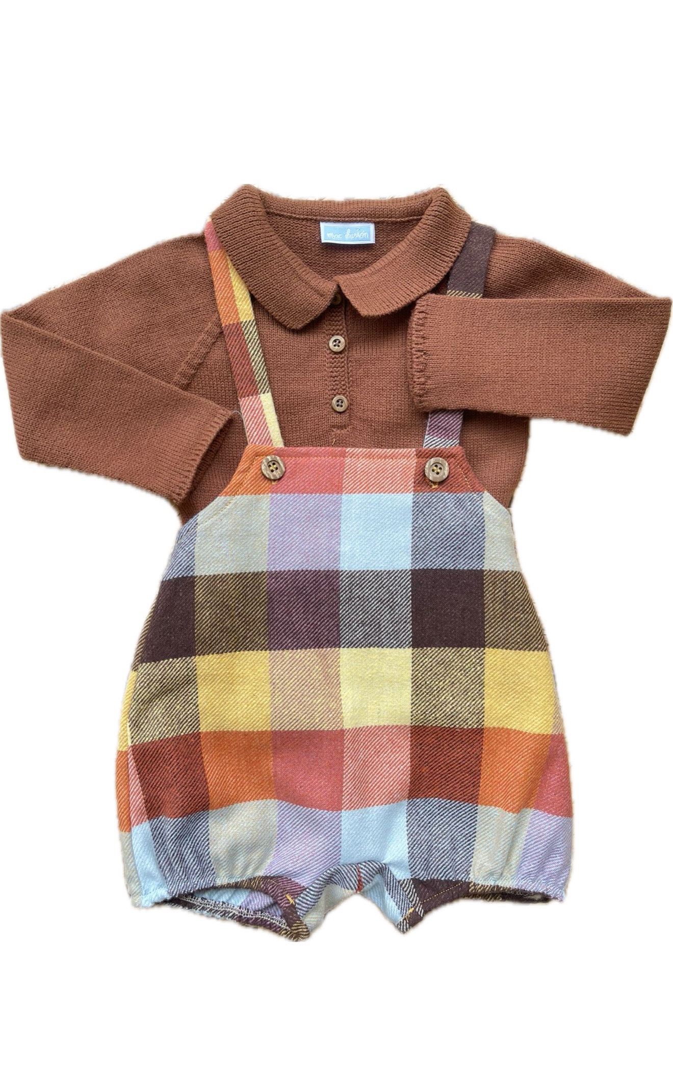 maglioncino collo polo, salopette in caldo cotone e vellutino.