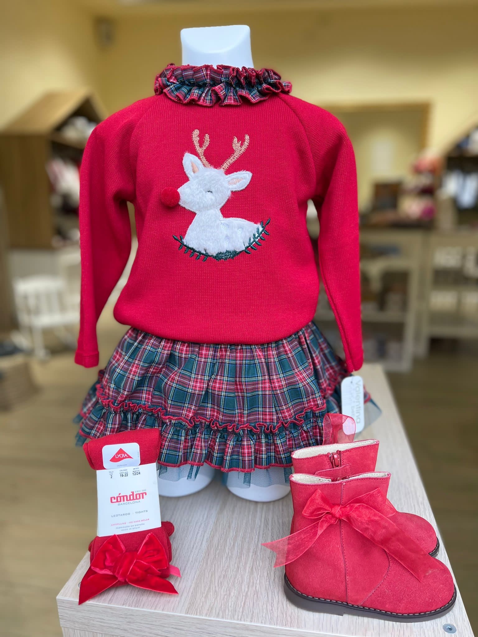 Maglioncino rosso con renna 3d e gonnellina