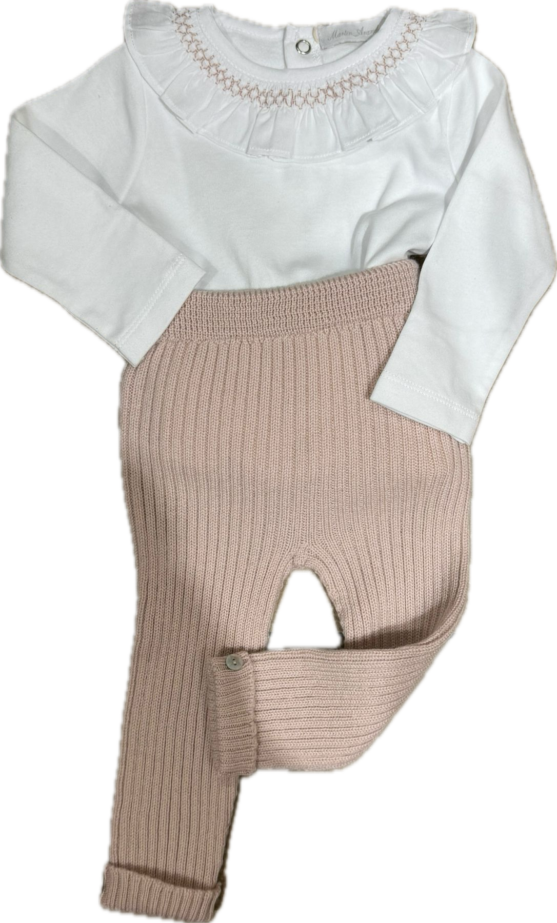 Leggins in lana e body in caldo cotone punto smoke ricamato a mano