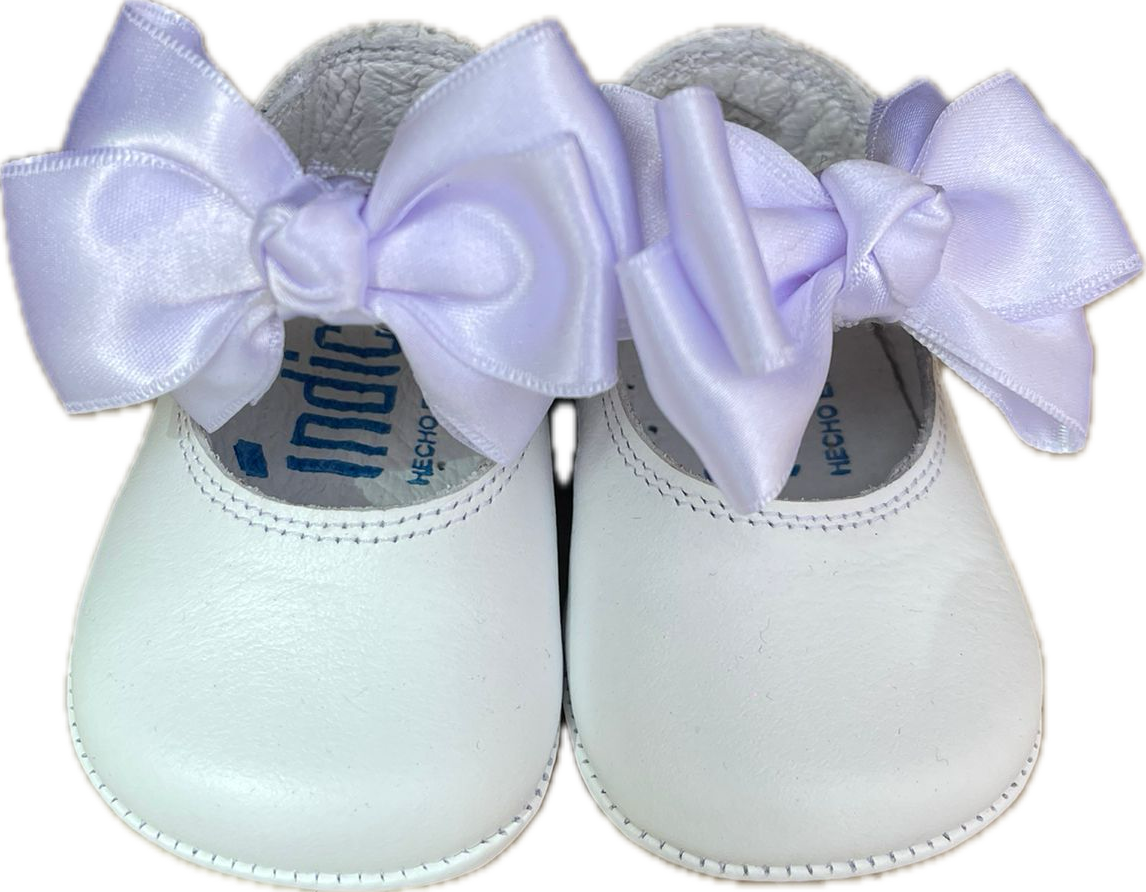Scarpina da culla, con suola morbida e strappo laterale . fiocco rimovibile.
