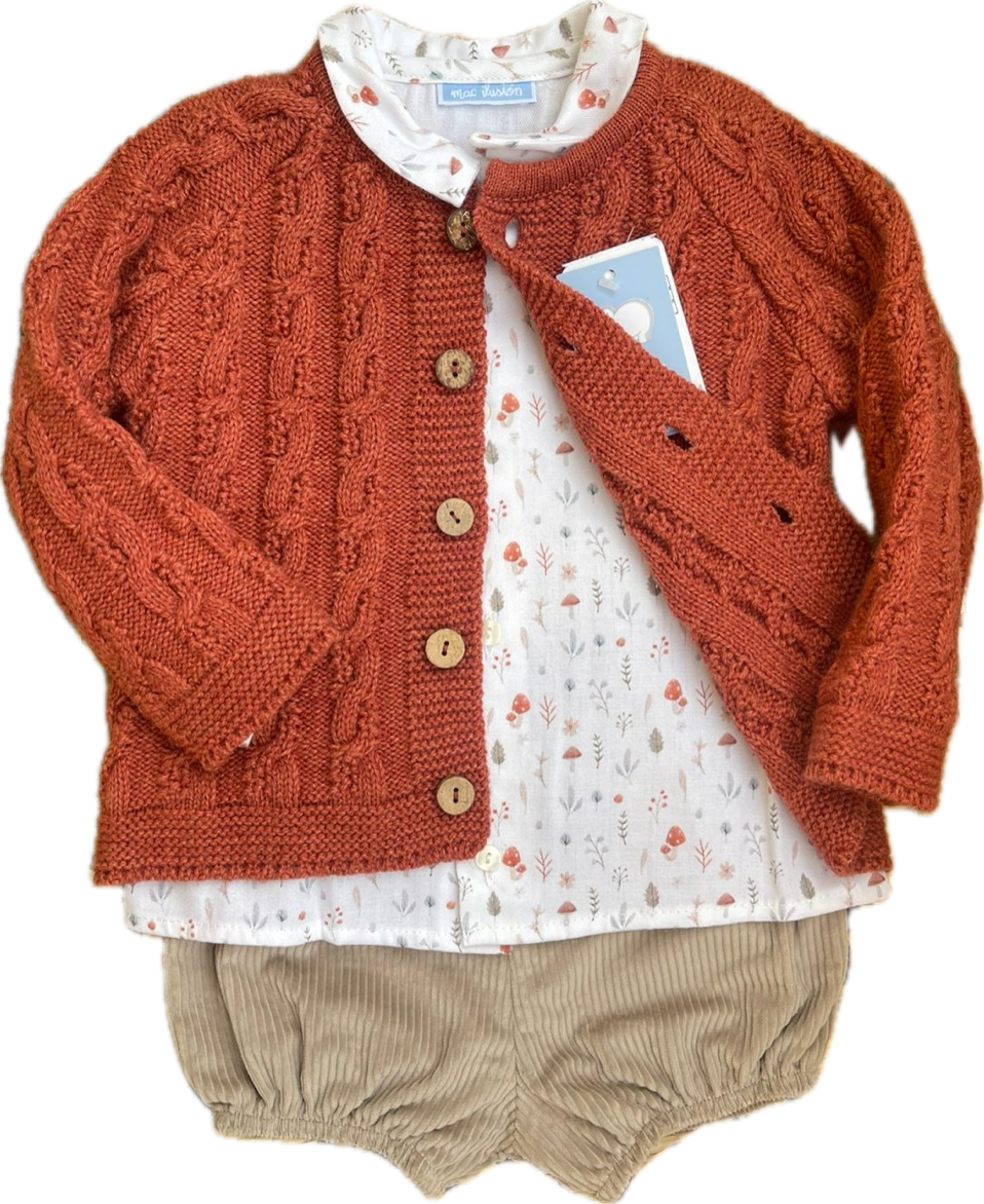 Set 3 pezzi bimbo con short, camicia con colletto e golfino .
