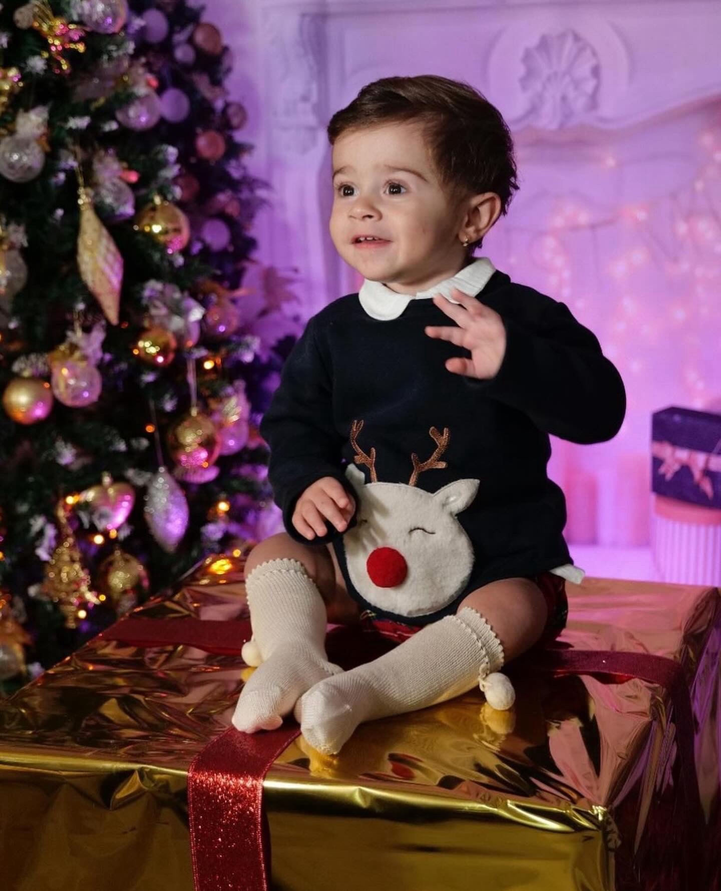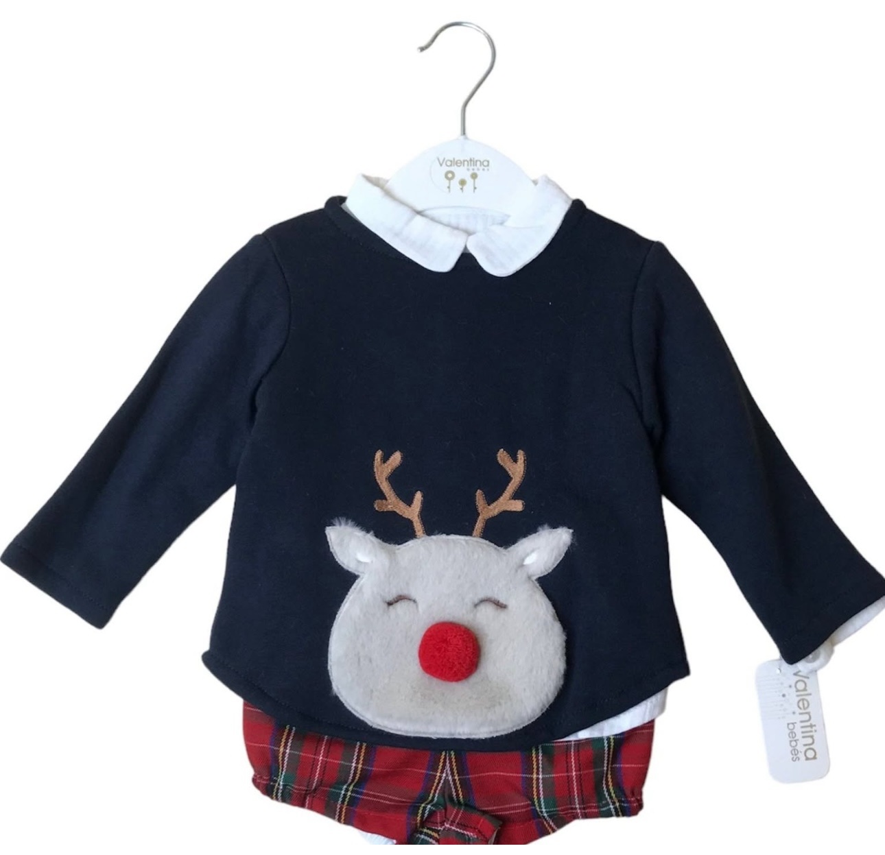 set con felpa renna, short e camicia bianca .