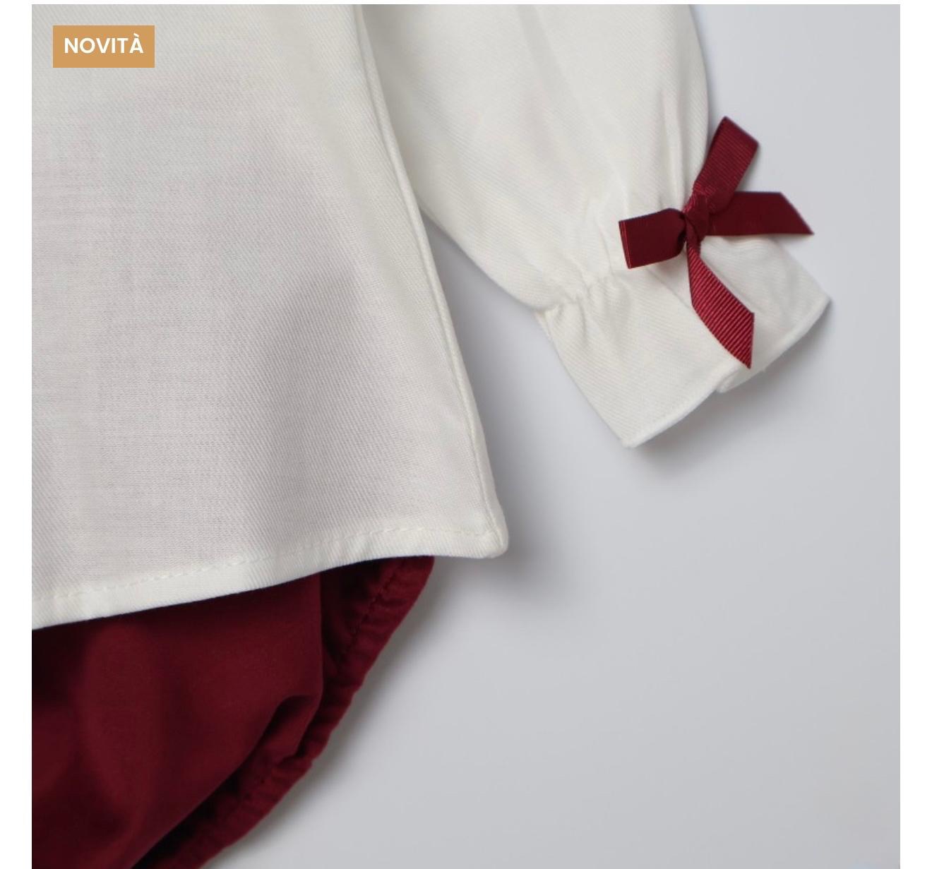 Camicia in caldo cotone con pizzo al colletto , culotte in velluto bordeaux