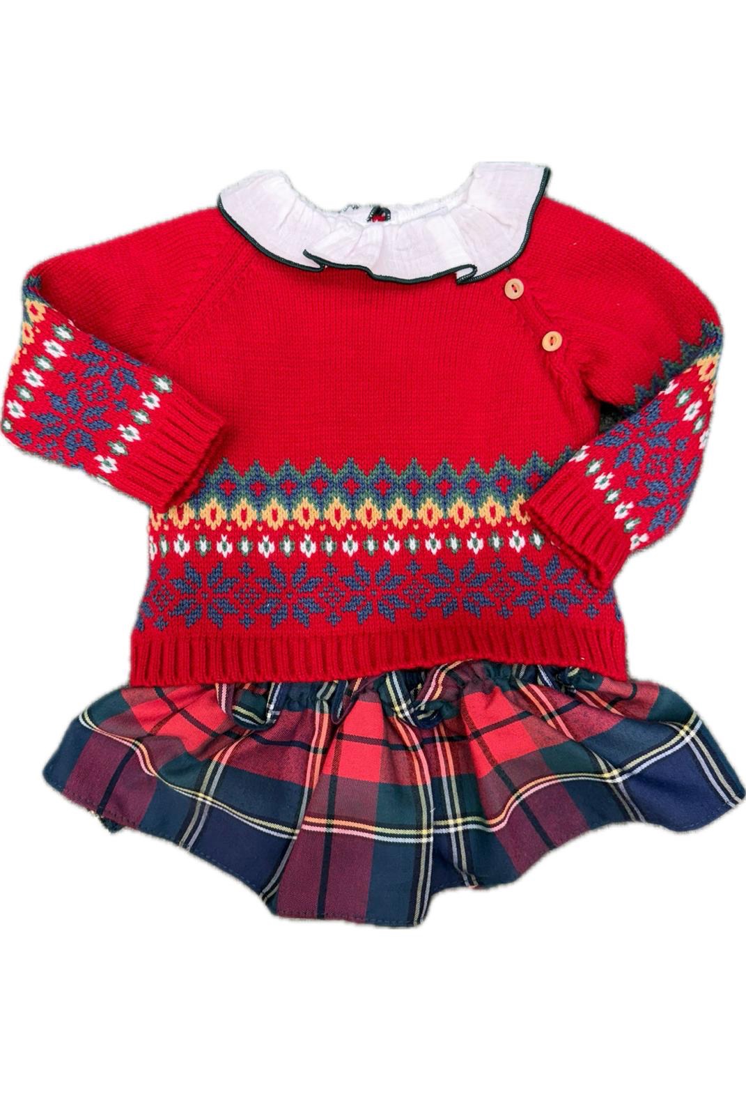 Camicia bianca con colletto , culotte effetto gonnellina e maglioncino in lana